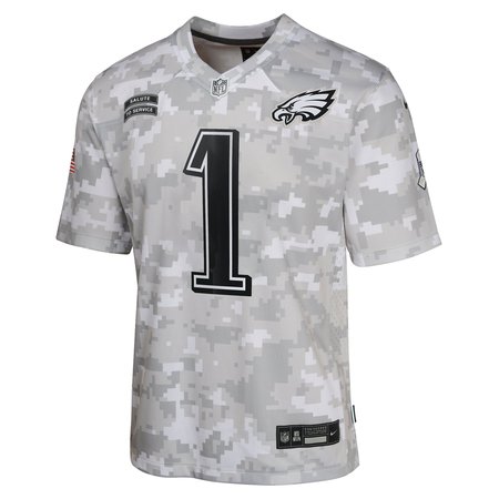 Youth Philadelphia Eagles Jalen Hurts Nike Arctic Camo 2024 Salute to Service Game Jersey