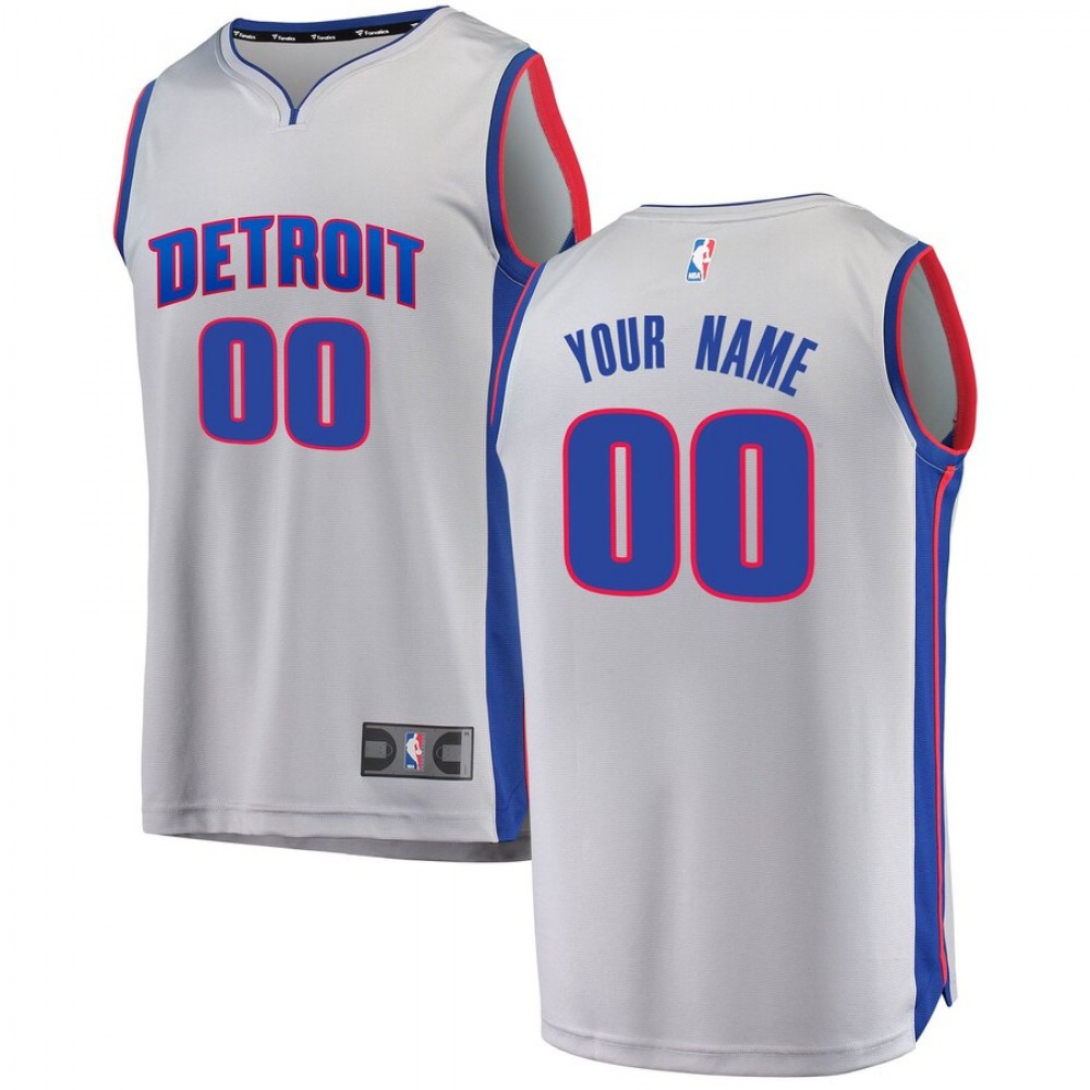 Men's Detroit Pistons Silver Customized Stitched NBA Jersey