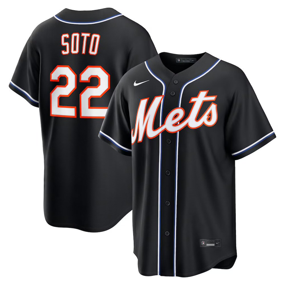 Men's New York Mets #22 Juan Soto Nike Fashion Replica Black Out Jersey