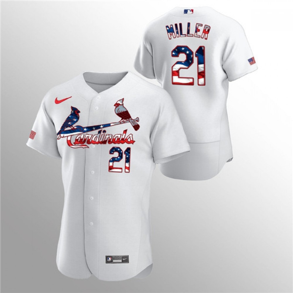Men's St. Louis Cardinals #21 Andrew Miller White 2020 Stars & Stripes Flex Base Stitched Jersey