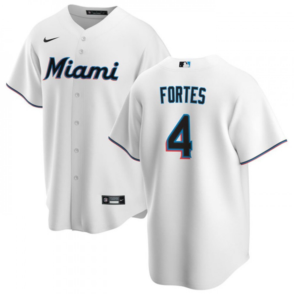 Men's Miami Marlins #4 Nick Fortes White Cool Base Stitched Baseball Jersey