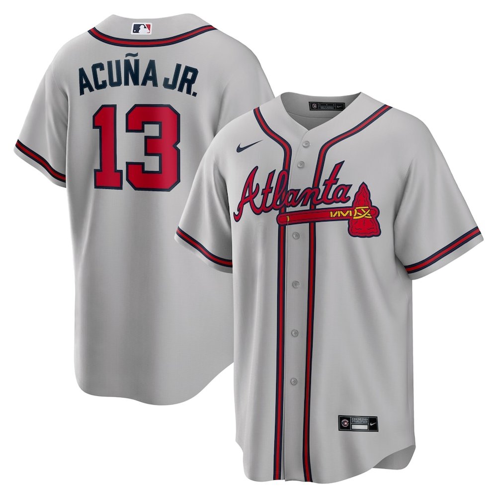 Men's Atlanta Braves #13 Ronald Acuna Jr. Gray Road Replica PlayerJersey