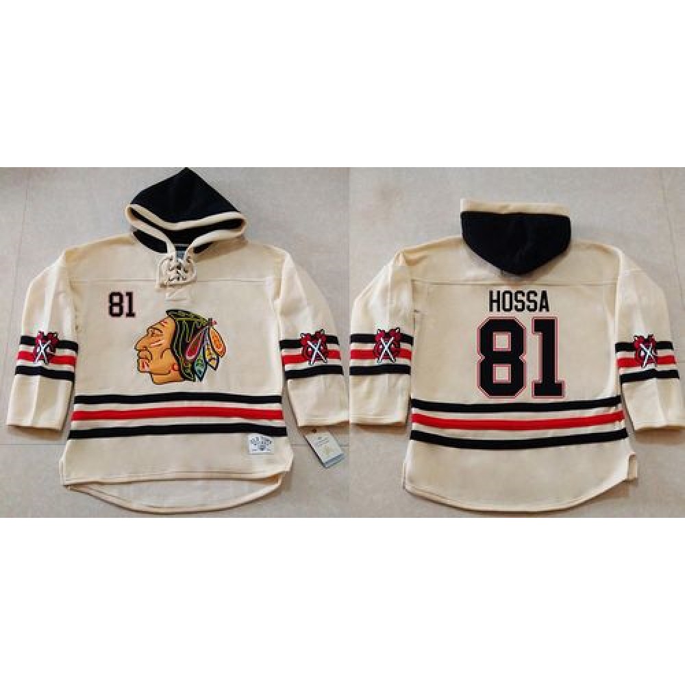 Blackhawks #81 Marian Hossa Cream Heavyweight Pullover Hoodie Stitched NHL Jersey