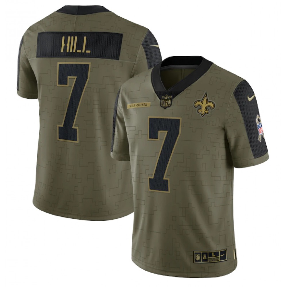 Men's New Orleans Saints #7 Taysom Hill 2021 Olive Salute To Service Limited Stitched Jersey