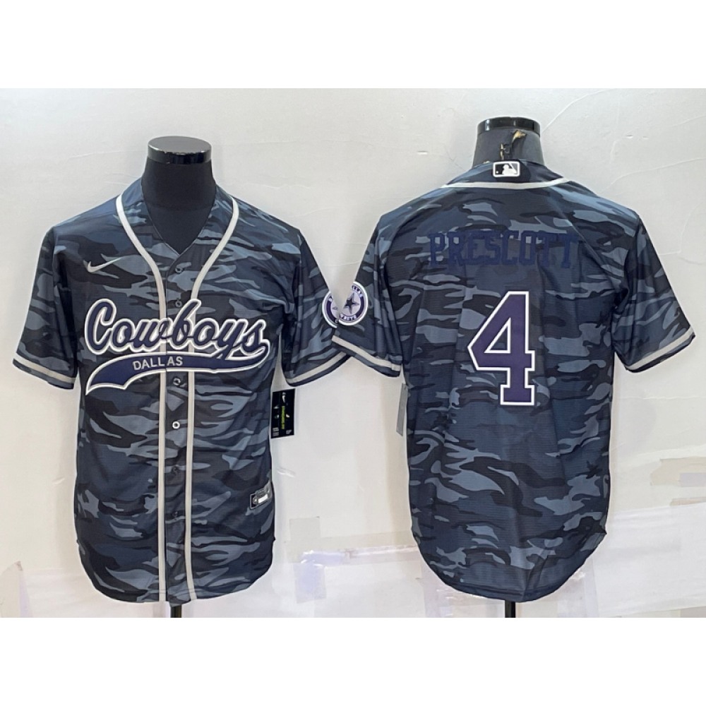 Men's Dallas Cowboys #4 Dak Prescott Grey Navy Camo With Patch Cool Base Stitched Baseball Jersey