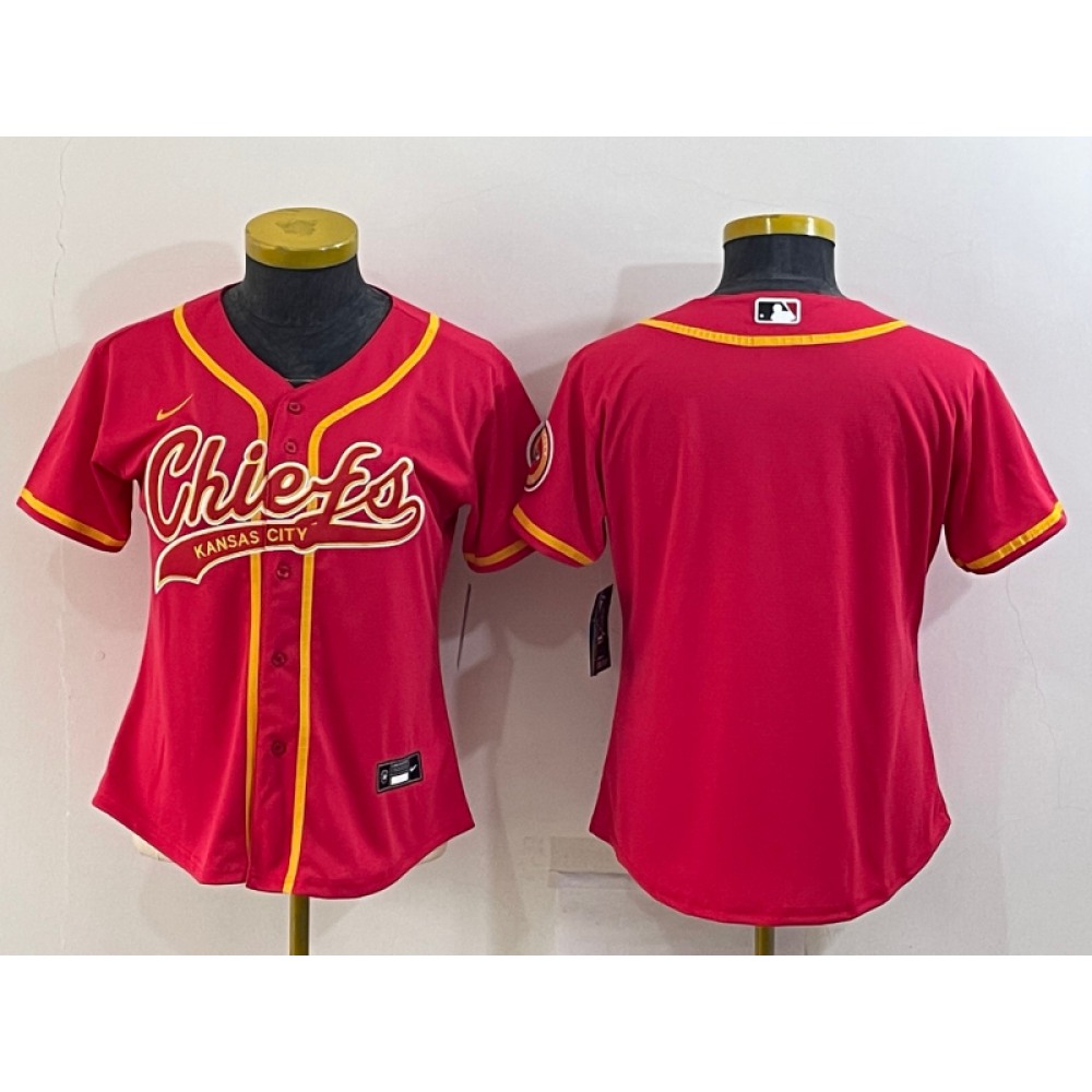 Women's Kansas City Chiefs Blank Red With Patch Cool Base Stitched Baseball Jersey(Run Small)