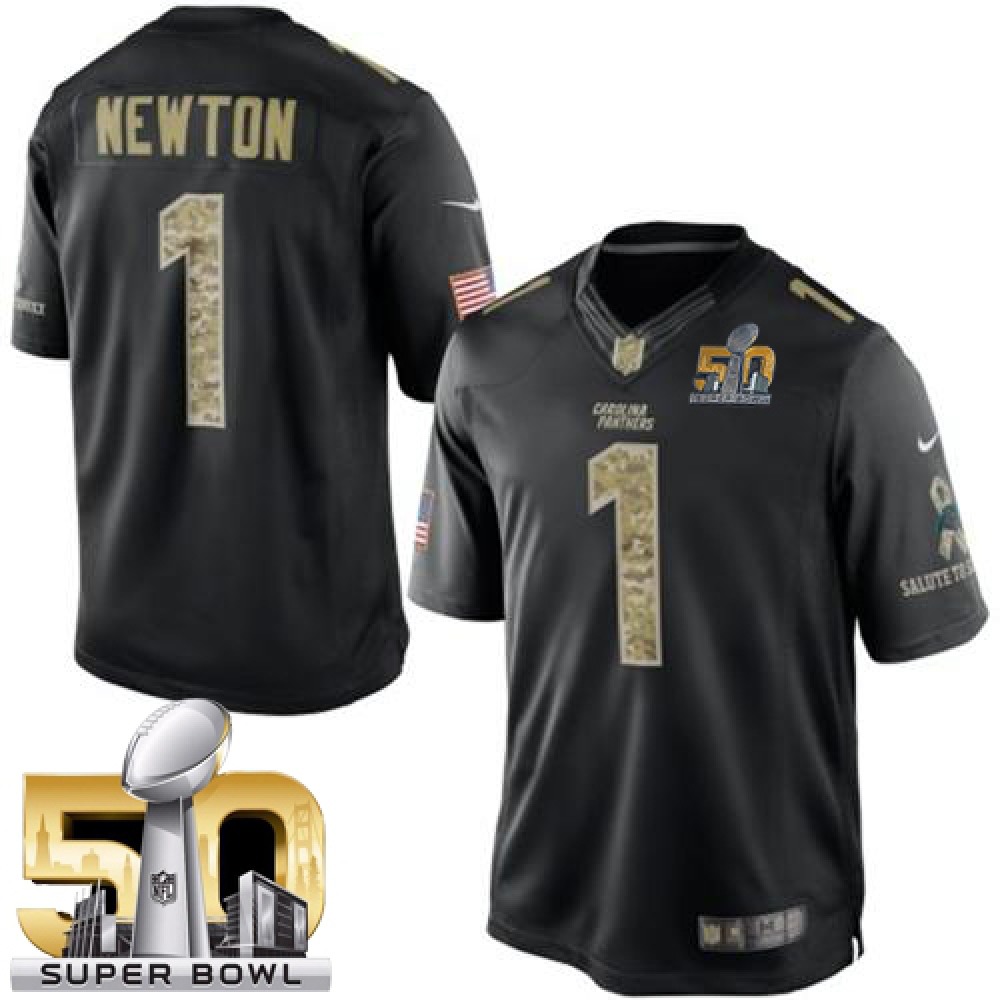 Nike Panthers #1 Cam Newton Black Super Bowl 50 Men's Stitched NFL Limited Salute to Service Jersey