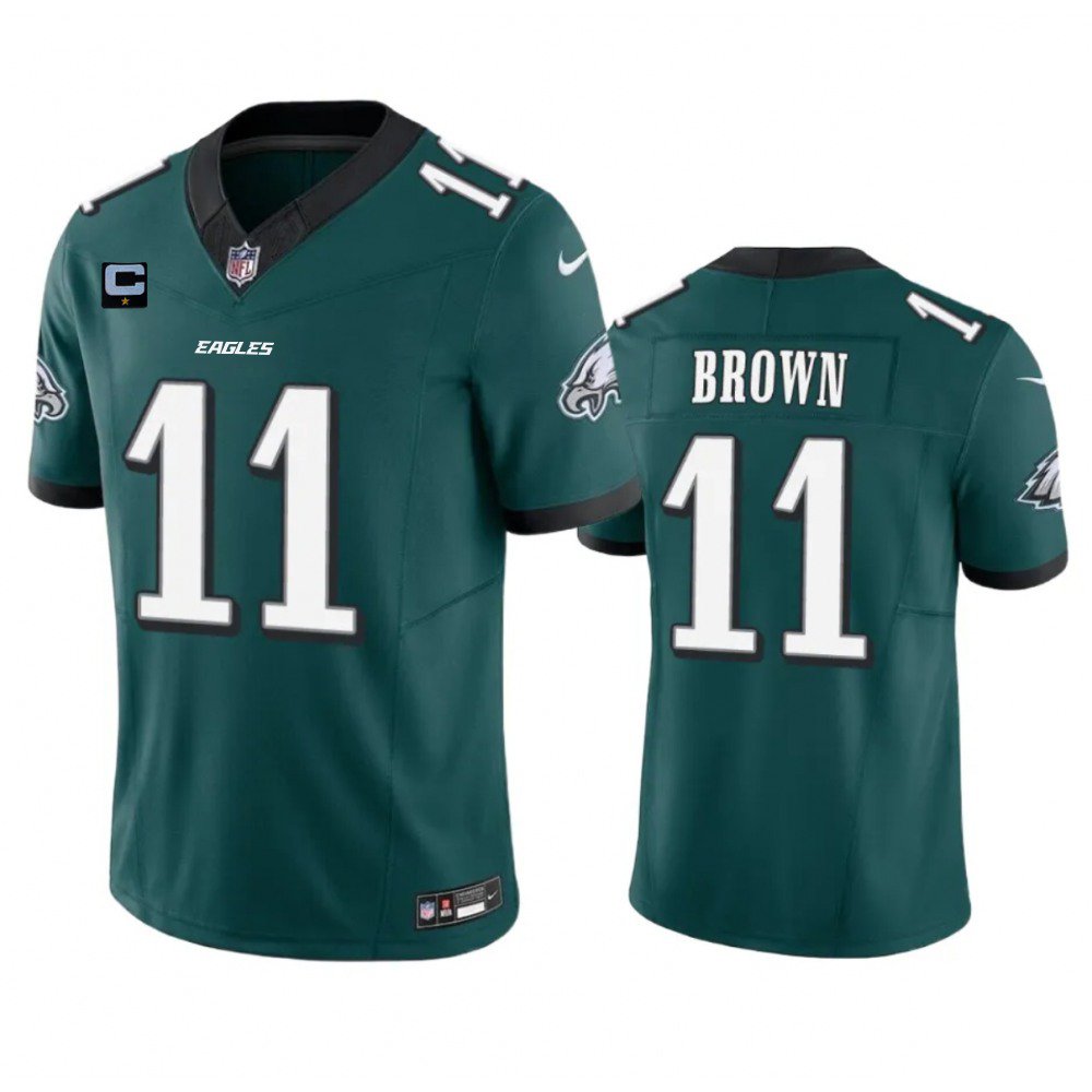 Men's Philadelphia Eagles #11 A. J. Brown Green 2023 F.U.S.E. With 1-Star C Patch Vapor Untouchable Limited Stitched Football Jersey