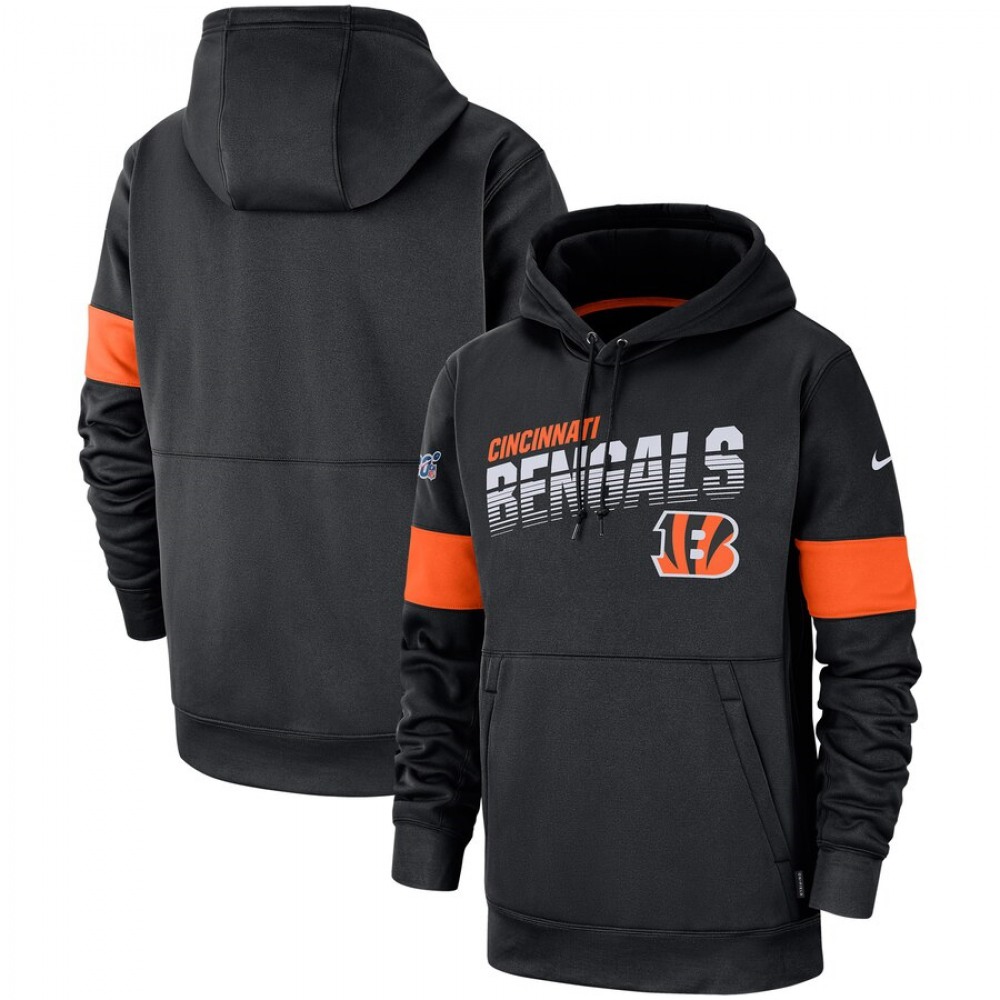 Men's Cincinnati Bengals 2019 Black 100th Season Sideline Team Logo Performance Pullover Hoodie