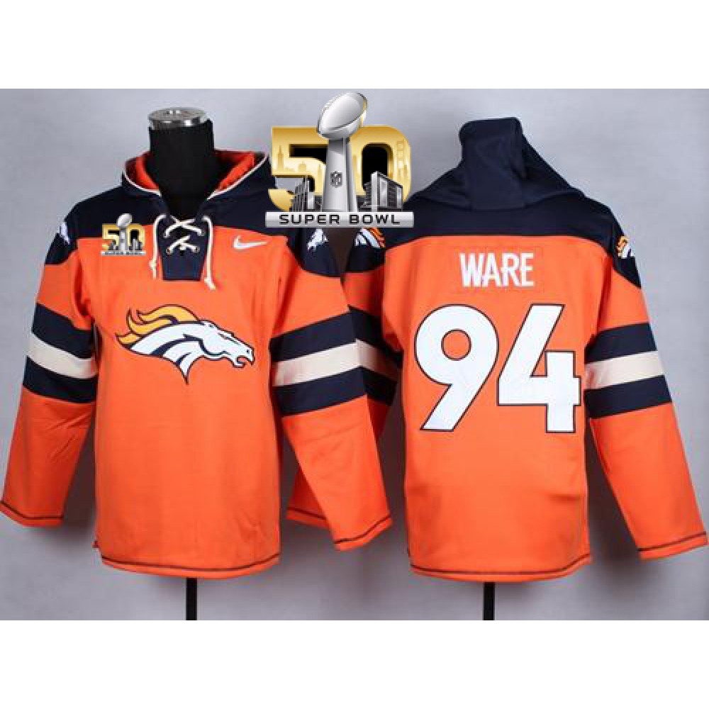 Nike Broncos #94 DeMarcus Ware Orange Super Bowl 50 Player Pullover NFL Hoodie