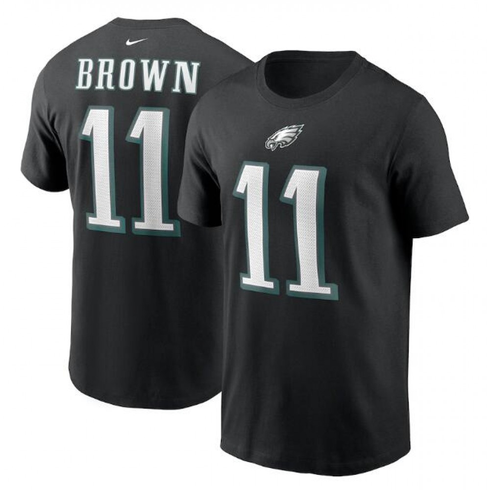 Men's Philadelphia Eagles #11 A. J. Brown 2022 Black Name & Number T-Shirt