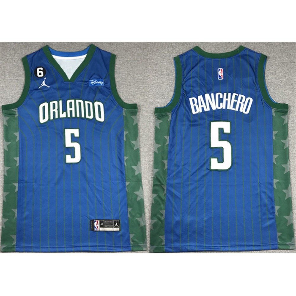 Men's Orlando Magic #5 Paolo Banchero Blue With No.6 Patch Icon Edition Stitched Swingman Jersey