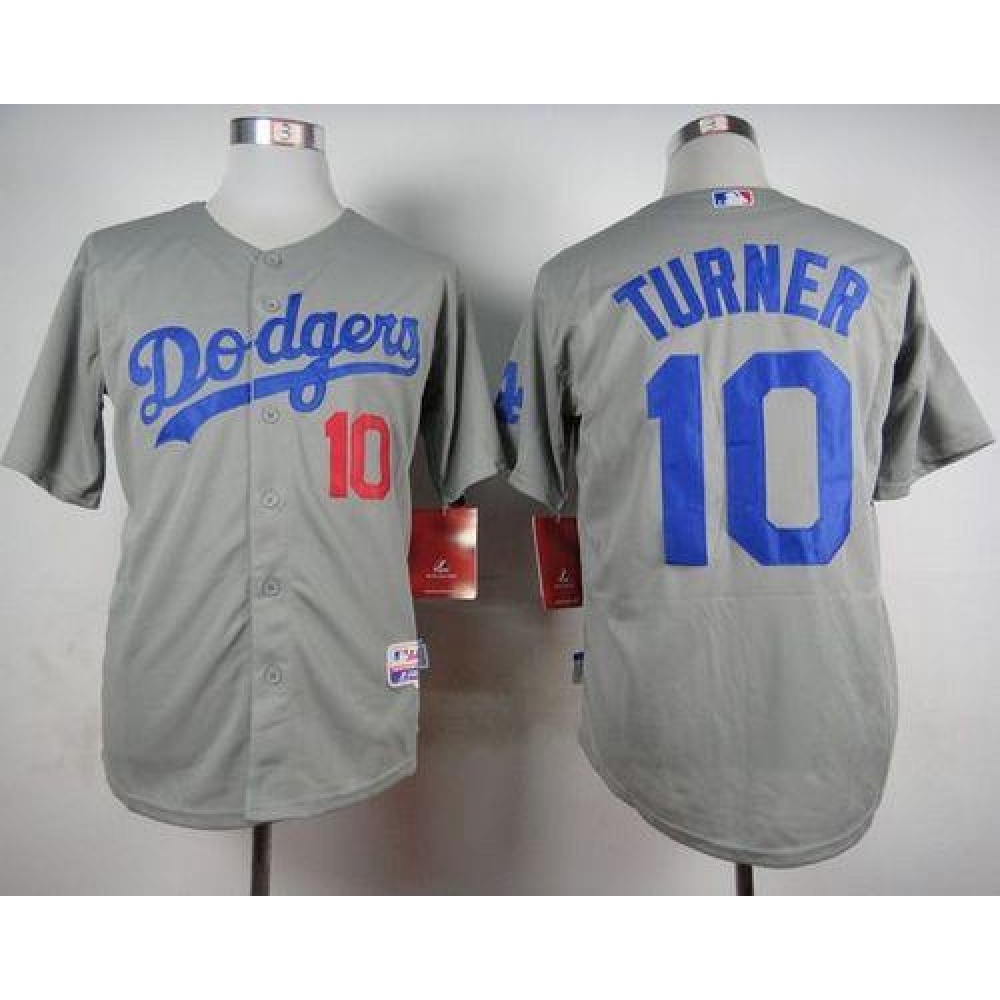 Dodgers #10 Justin Turner Grey Cool Base Stitched MLB Jersey