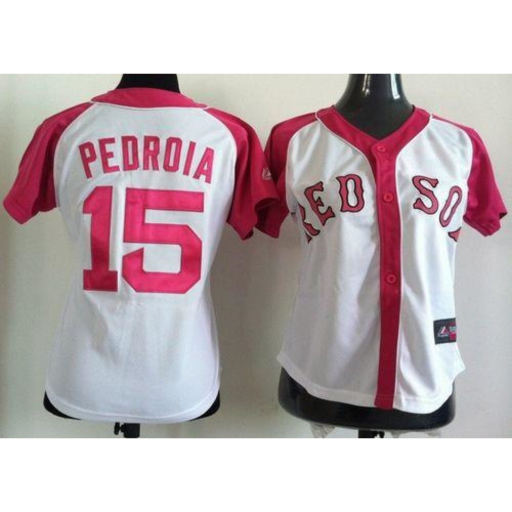 Red Sox #15 Dustin Pedroia White/Pink Women's Splash Fashion Stitched MLB Jersey