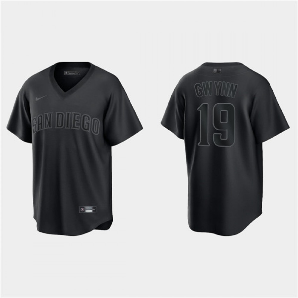 Men's San Diego Padres #19 Tony Gwynn Black Pitch Black Fashion Replica Stitched Jersey