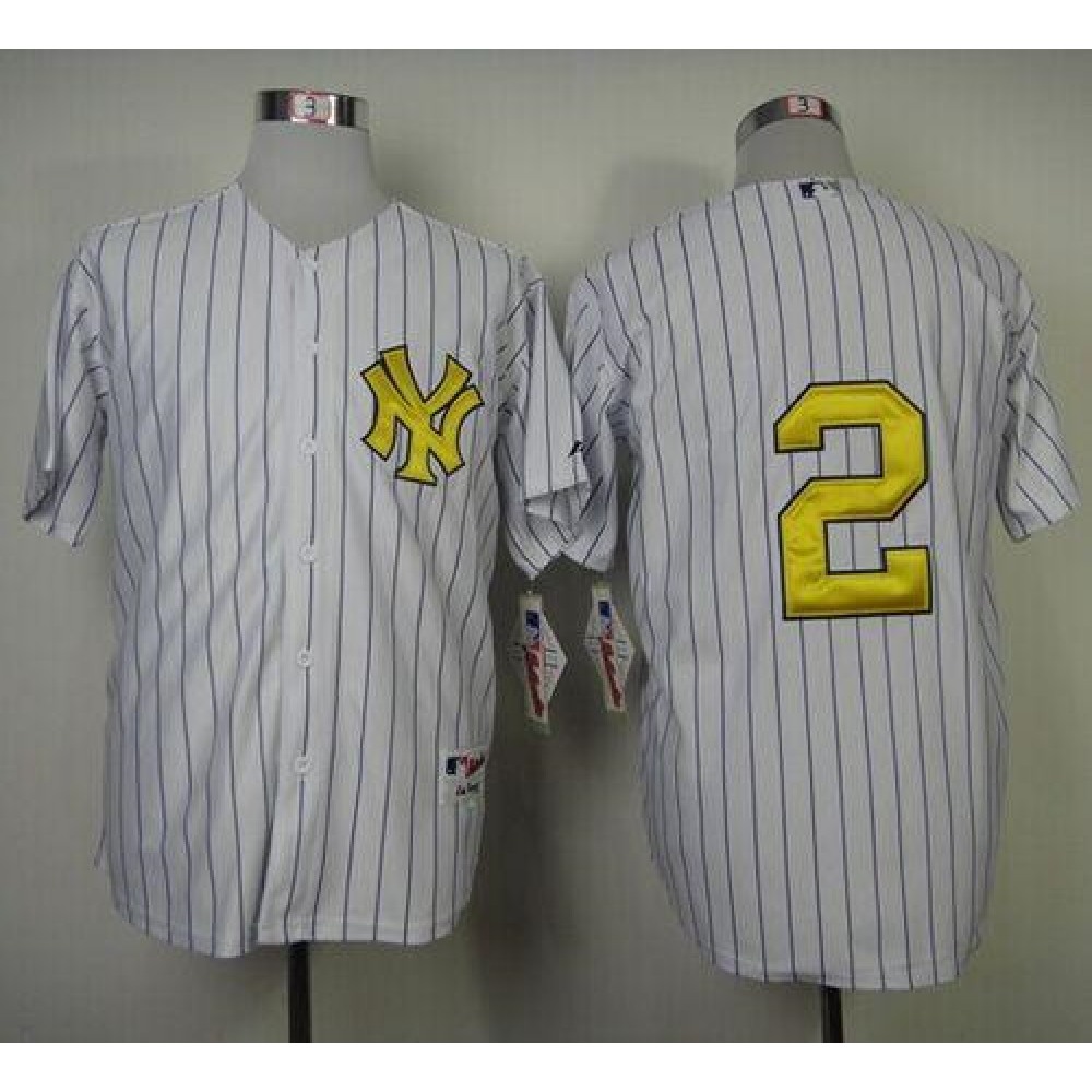 Yankees #2 Derek Jeter White Fashion Gold w/Commemorative Retirement Patch Stitched MLB Jersey