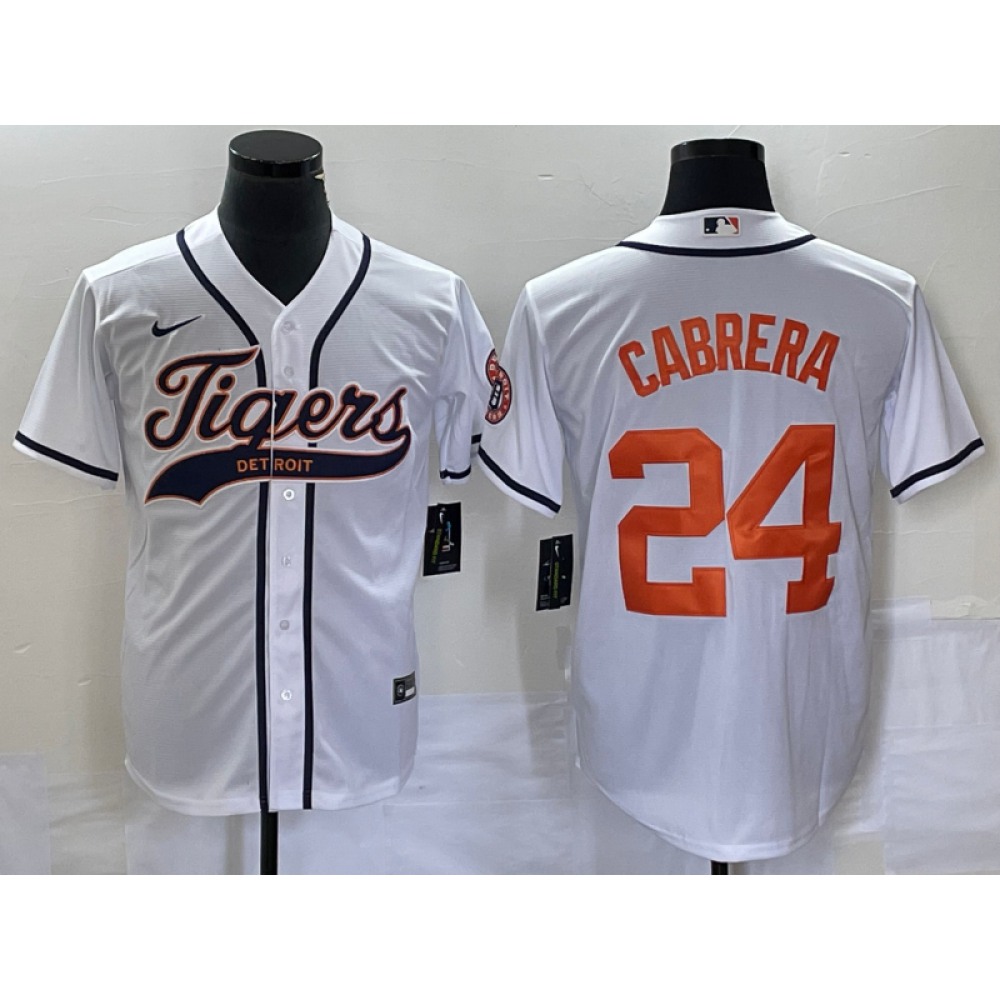 Men's Detroit Tigers #24 Miguel Cabrera White Cool Base Stitched Baseball Jersey