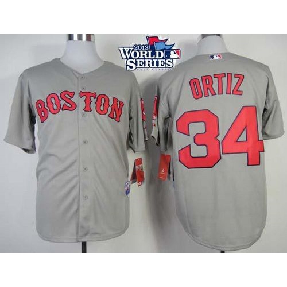 Red Sox #34 David Ortiz Grey Cool Base 2013 World Series Patch Stitched MLB Jersey