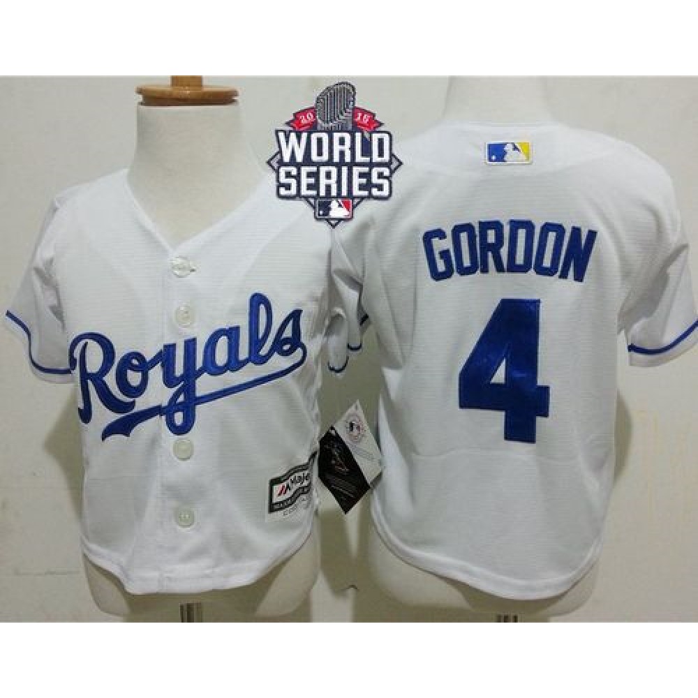 Toddler Royals #4 Alex Gordon White Cool Base W/2015 World Series Patch Stitched MLB Jersey