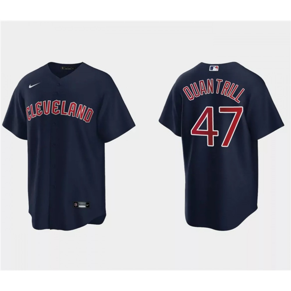 Men's Cleveland Guardians #47 Cal Quantrill Navy Cool Base Stitched Jersey