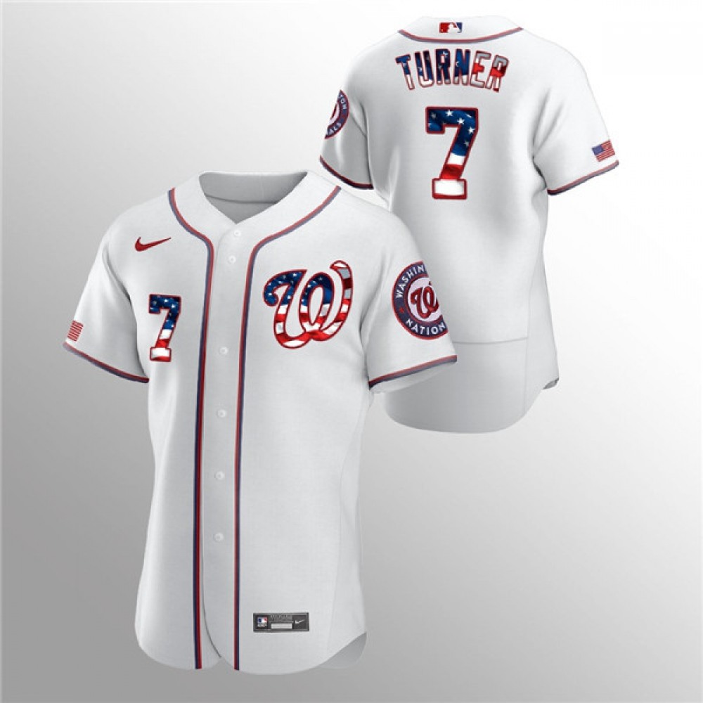 Men's Washington Nationals #7 Trea Turner White 2020 Stars & Stripes Flex Base Stitched Jersey