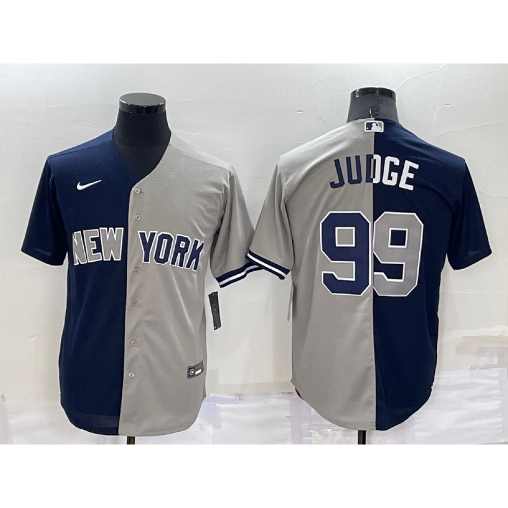 Men's New York Yankees #99 Aaron Judge Navy/Grey Split Cool Base Stitched Baseball Jersey