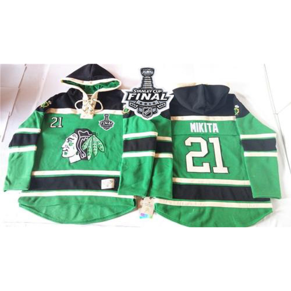 Blackhawks #21 Stan Mikita Green St. Patrick's Day McNary Lace Hoodie 2015 Stanley Cup Stitched NHL Jersey