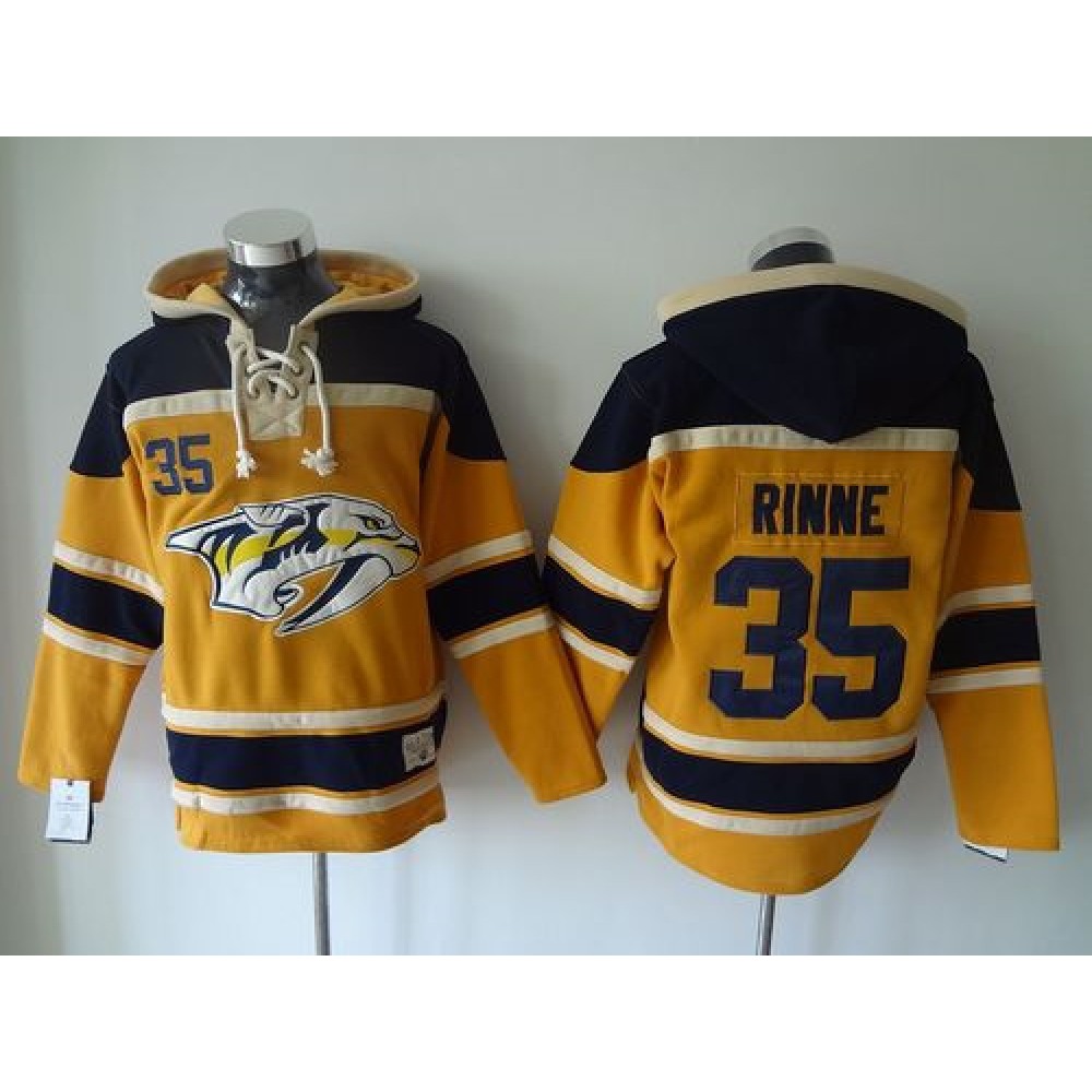 Predators #35 Pekka Rinne Yellow Sawyer Hooded Sweatshirt Stitched NHL Jersey