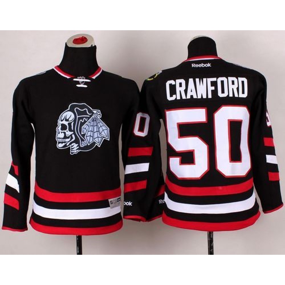 Blackhawks #50 Corey Crawford Black(White Skull) 2014 Stadium Series Stitched Youth NHL Jersey