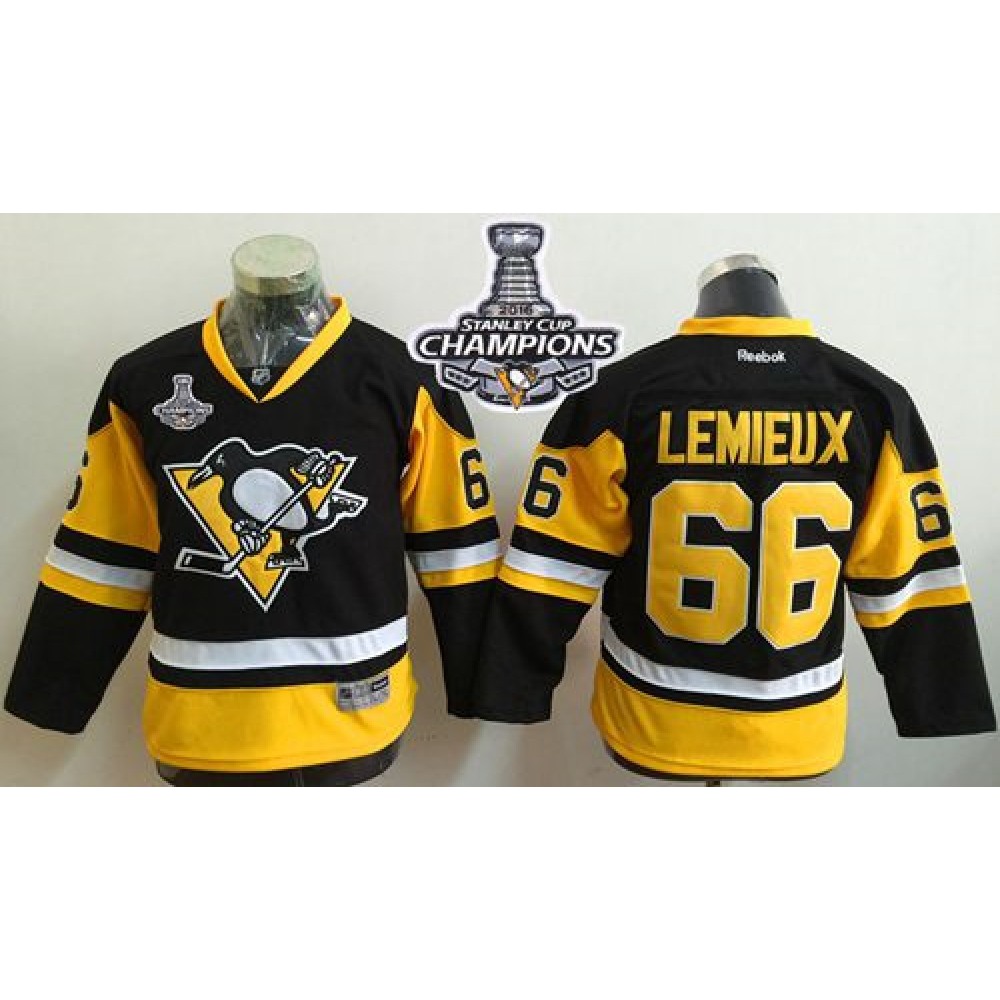 Penguins #66 Mario Lemieux Black Alternate 2016 Stanley Cup Champions Stitched Youth NHL Jersey