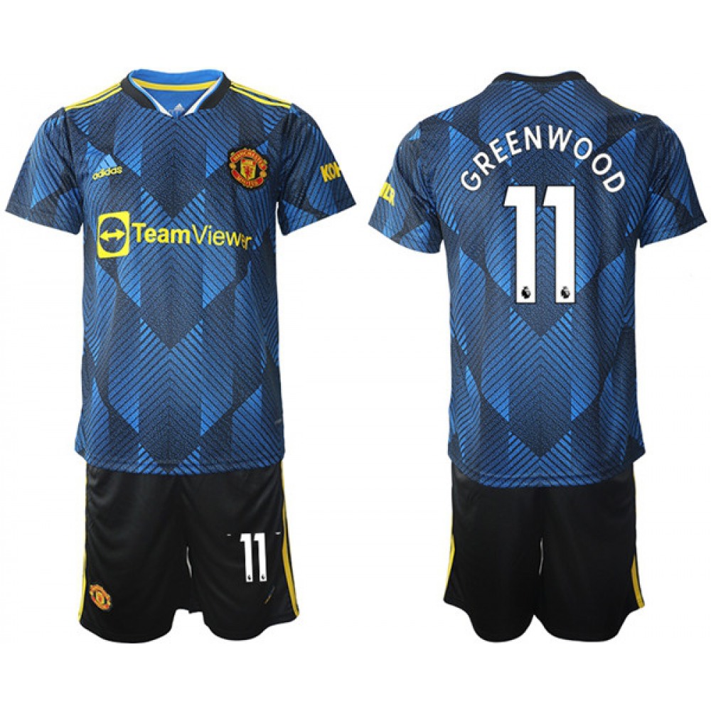 Men's Manchester United #11 Mason Greenwood Blue Away Soccer Jersey Suit