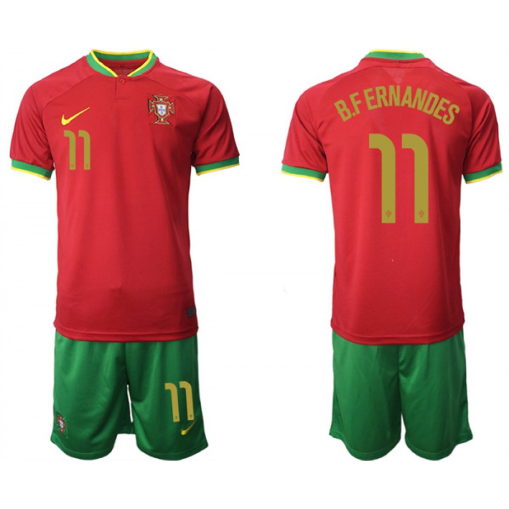 Men's Portugal #11 B. Fernandes Red Home Soccer Jersey Suit