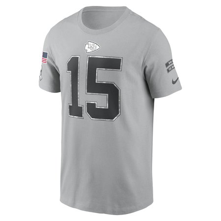 Men's Kansas City Chiefs Patrick Mahomes Nike Gray 2024 Salute To Service Name & Number T-Shirt