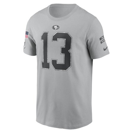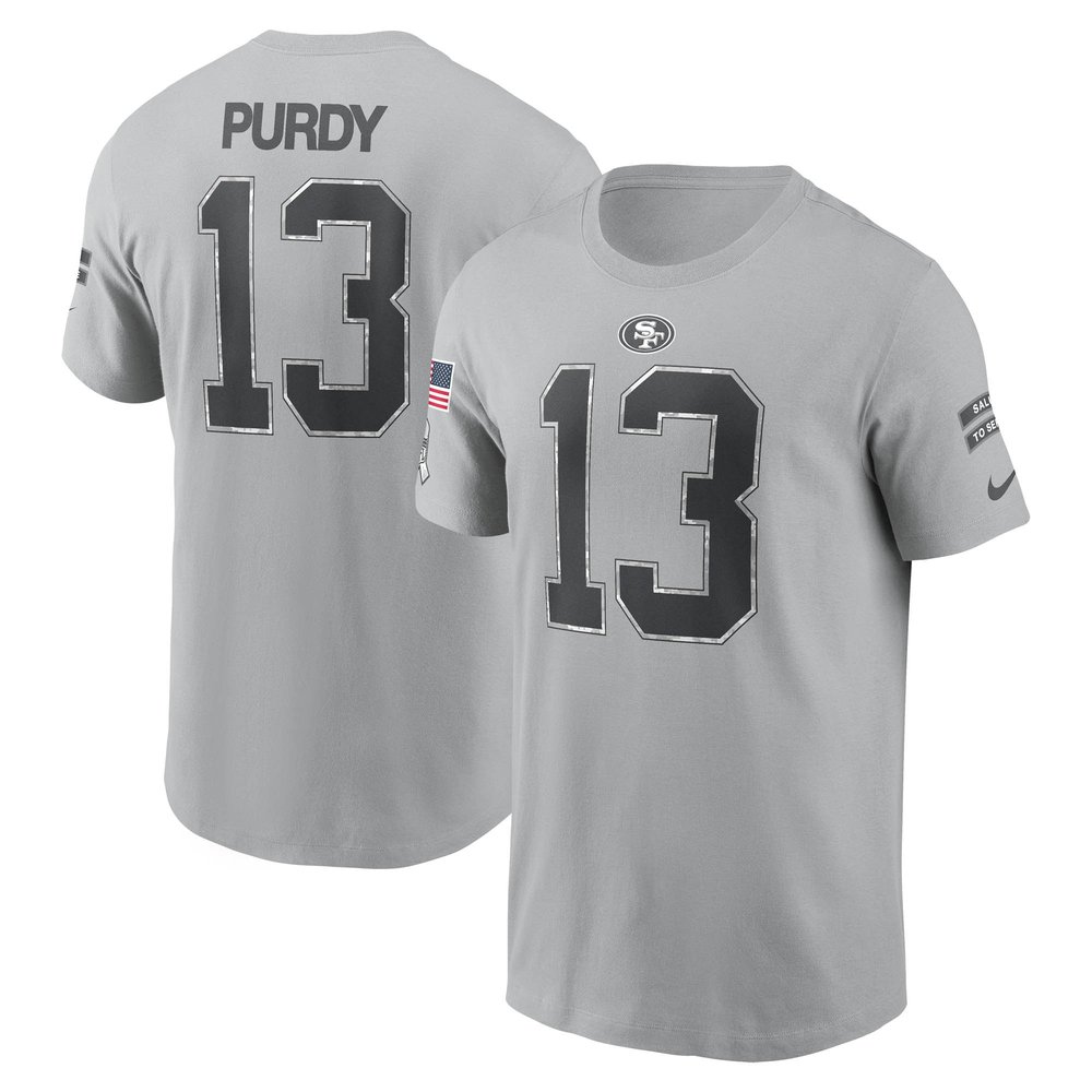 Men's San Francisco 49ers Brock Purdy Nike Gray 2024 Salute To Service Name & Number T-Shirt
