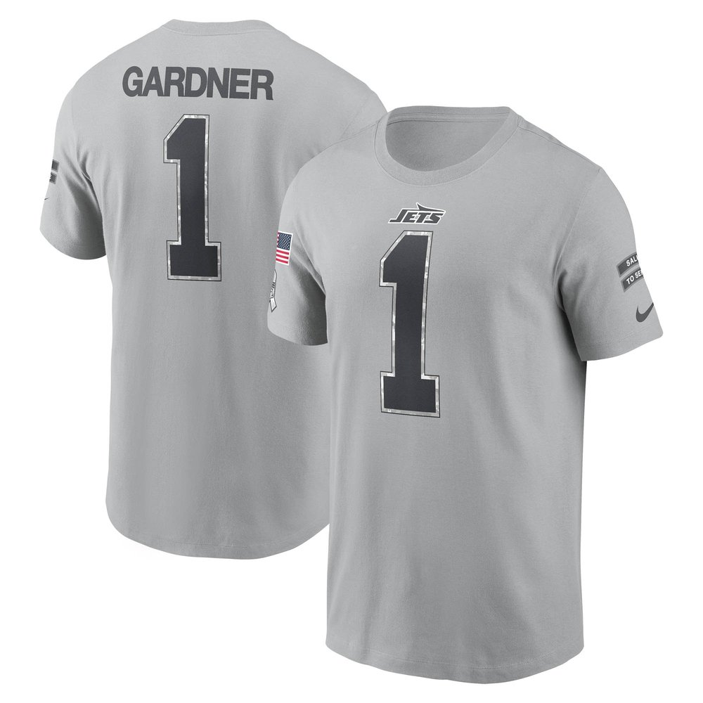 Men's New York Jets Ahmad Sauce Gardner Nike Gray 2024 Salute To Service Name & Number T-Shirt