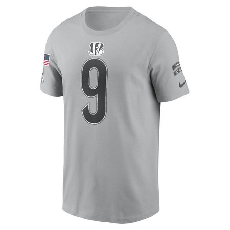 Men's Cincinnati Bengals Joe Burrow Gray 2024 Salute To Service Name & Number T-Shirt