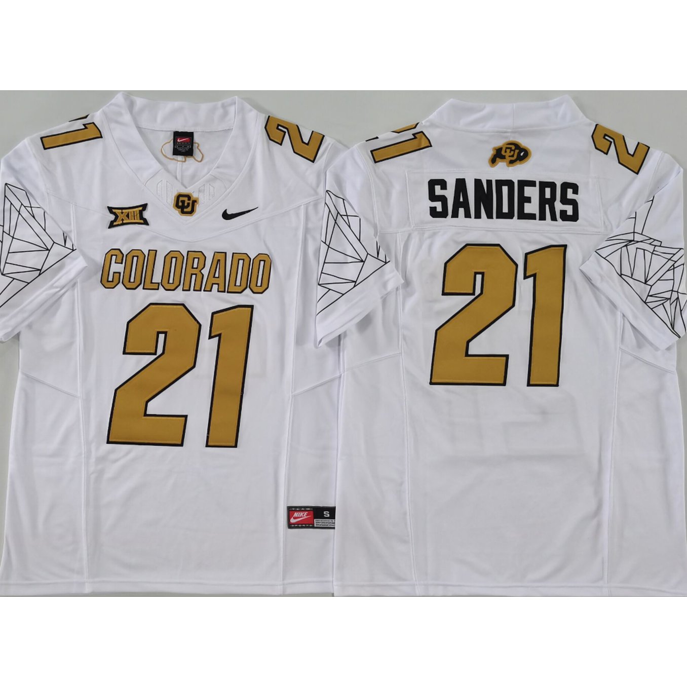Men's Colorado Buffaloes White #21 Sanders Stitched Jersey