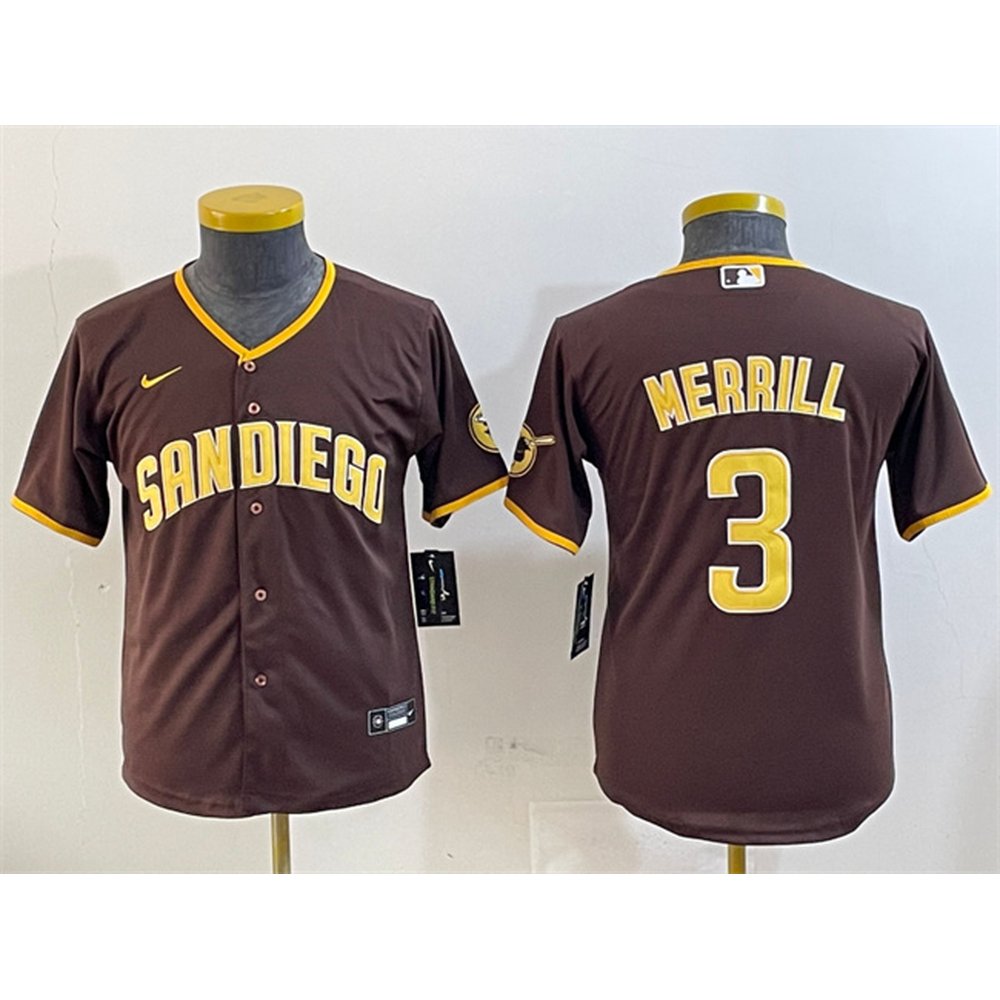 Youth San Diego Padres #3 Jackson Merrill Brown Stitched Baseball Jersey