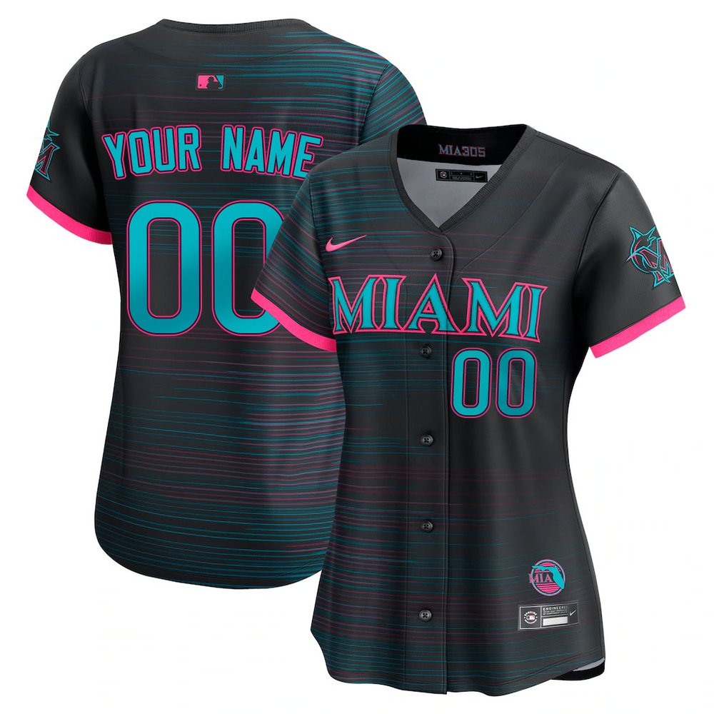 Women's Miami Marlins Custom Nike Black 2025 City Connect Limited Jersey