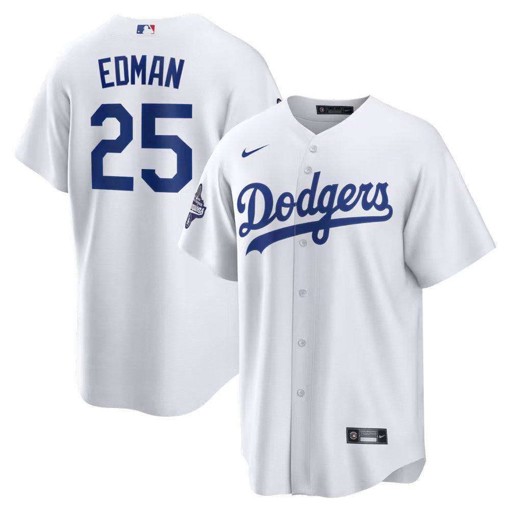 Youth Los Angeles Dodgers #25 Tommy Edman Nike White 2025 World Series Champions Home Replica Jersey