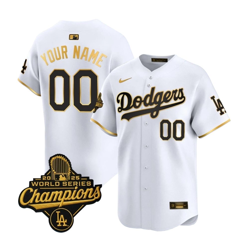 Men's Los Angeles Dodgers Custom Nike White Golden 2025 World Series Champions Home Limited Jersey