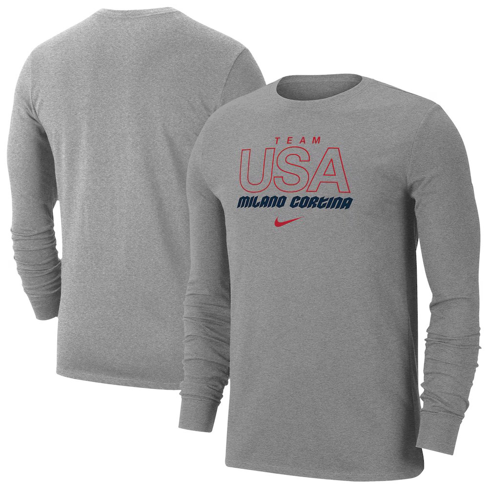 Men's Team USA Heather Gray Milano Cortina 2026 Winter Olympics Dri-FIT Long Sleeve T-Shirt