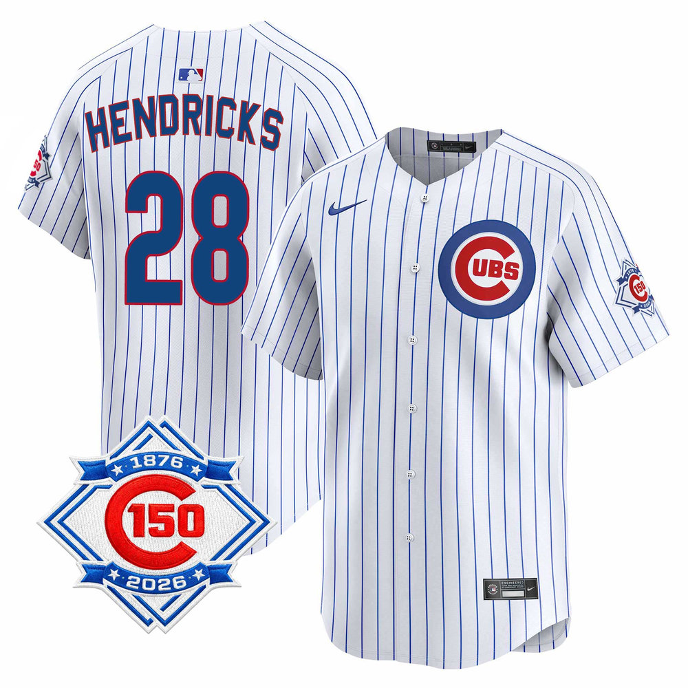 Men's Chicago Cubs #28 Kyle Hendricks White Nike Home Vapor Limited 150th Anniversary Authentic Lettering Jersey