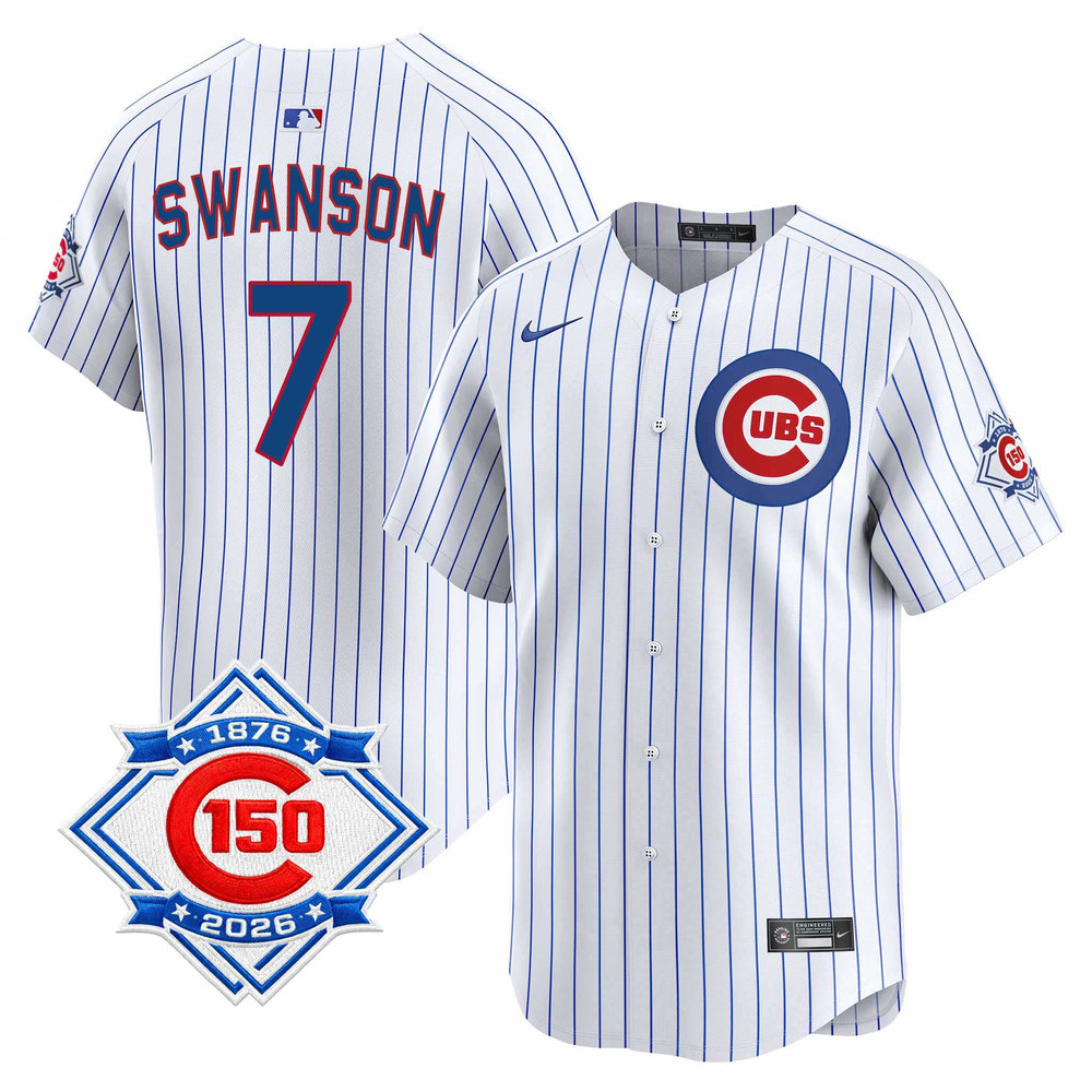 Youth Chicago Cubs #7 Dansby Swanson White Nike Home Vapor Limited 150th Anniversary Authentic Lettering Jersey
