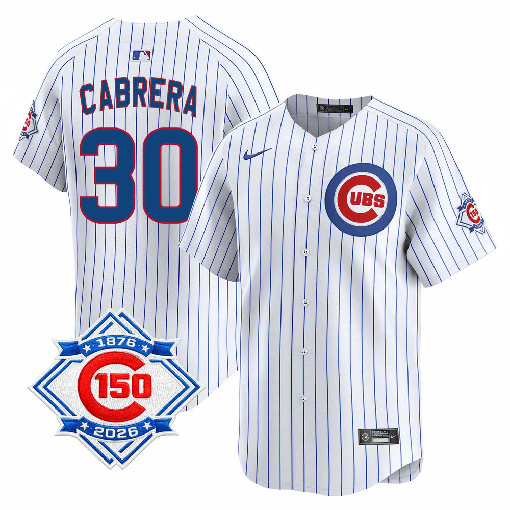Youth Chicago Cubs #30 Edward Cabrera White Nike Home Vapor Limited 150th Anniversary Authentic Lettering Jersey